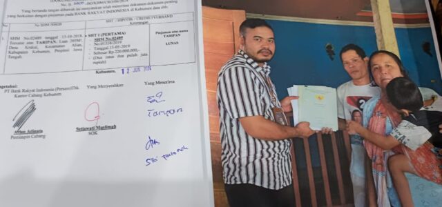 Lebih mengejutkan lagi, pihak BRI sempat menunjukkan foto seolah-olah sertifikat jaminan rumah Taripan sudah dikembalikan. Nyatanya, sertifikat tersebut masih berada di tangan seorang oknum yang mengaku Kepala Cabang BRI Kebumen.