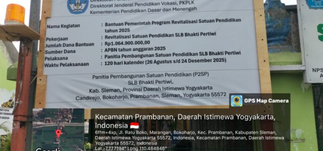 SLEMAN | PortalindonesiaNews.Net – Transparansi pengelolaan proyek pendidikan kembali disorot. Kali ini, proyek revitalisasi SLB Bhakti Pertiwi Bokoharjo, Prambanan, Sleman, DIY senilai Rp1.064.900.000 dari APBN 2025 diduga sarat penyimpangan dan minim keterbukaan terhadap publik, terutama media.