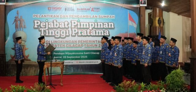 CILACAP – PortalIndonesiaNews.Net – Suasana Pendopo Wijayakusuma, Jumat (26/9/2025), menjadi saksi penting perjalanan birokrasi di Kabupaten Cilacap. Bupati Syamsul Auliya Rachman melantik sekaligus mengambil sumpah 17 pejabat pimpinan tinggi pratama. Pelantikan ini bukan sekadar seremonial, melainkan bagian dari langkah strategis untuk memperkuat roda pemerintahan di tengah tantangan berat menurunnya dana transfer daerah sebesar Rp393 miliar.